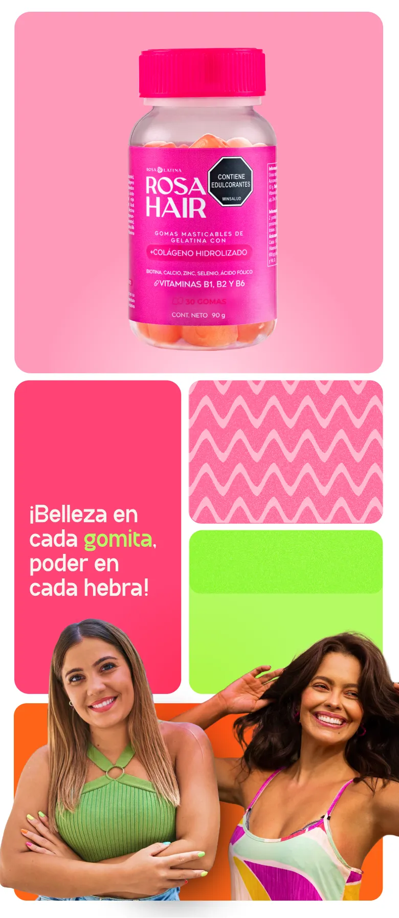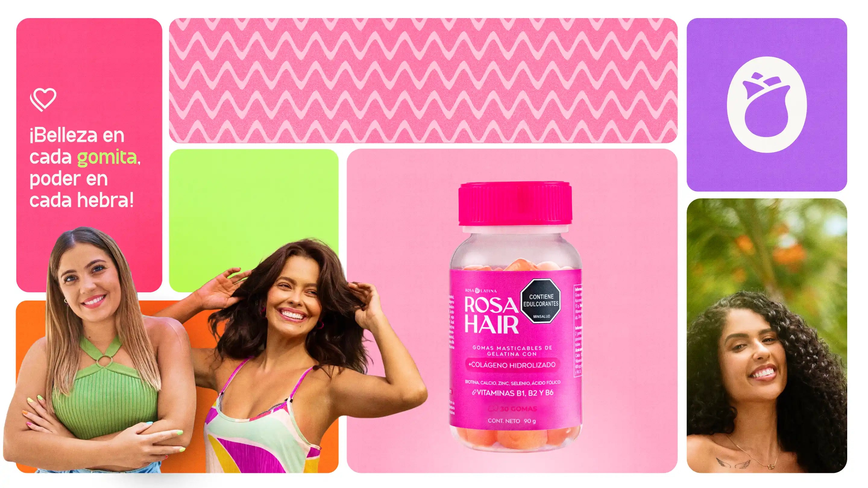 Rosa Hair ayuda al crecimiento del cabello de manera saludable y natural. Cabello con más volumen y brillo, con una rutina diaria y constante.
